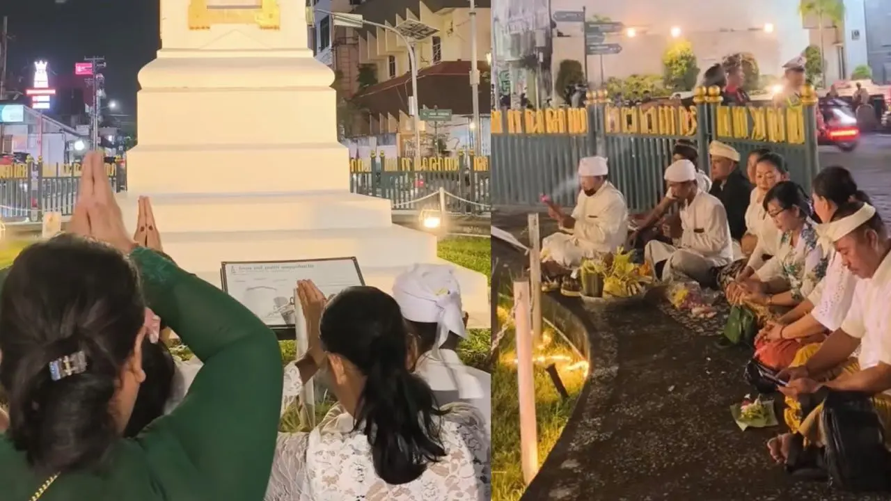 Jelang Perayaan Nyepi, Umat Hindu Khusyuk Gelar Ritual Matur Piuning Tepat di Tugu Jogja