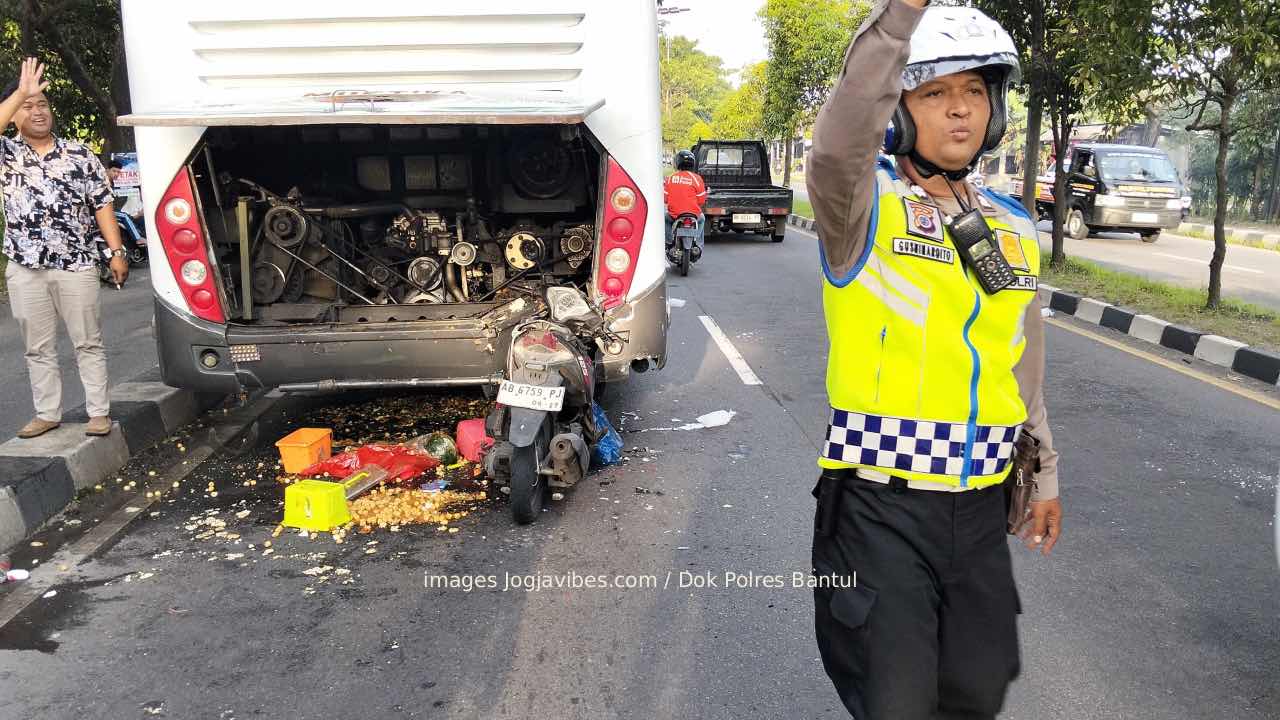 Kecelakaan di Ring Road Bantul: Honda Vario Tabrak Bus Mogok, Mahasiswa Patah Tulang